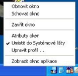 volba zapnutá, kliknutím na ikonu v Systémové liště minimalizujete přidružené