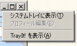 - TrayIt! は一つのウィンドウだけを持つアプリケーションだけを正しくハンドルできます。しかし、タスクバー領域に複数のボタンを表示するタイプのアプリケーションなら正しくハンドルすることが可能です。