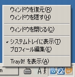 - トレイのアイコンをクリックしたとき、最前面にあるウィンドウならば最小化を行い、他のウィンドウの背後にあるウィンドウの場合はそのプログラムをアクティブにします。