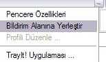 - Öndeyken Küçült, Arkaplandayken Aktif Et - açıkken, Bildirim Alanındaki simgeye tıklayınca ilişkilendirilmiş pencere açıksa küçültülür. Pencere simge durumundaysa öne getirilir.